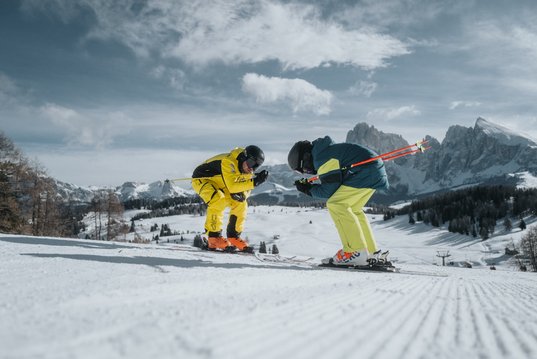 Damit es den Kleinen nicht zu viel wird, planen unsere Skilehrer immer wieder Pausen ein und passen sich den individuellen Fähigkeiten und der Ausdauer deines Kindes an. Der Kurs findet im eingezäunten Kinderpark auf der sonnigen Seiser Alm statt – in sicherer, kindgerechter Umgebung.