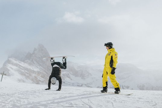 Die Seiser Alm ist der Grödner Hotspot für Snowboardfahrer. Unsere Snowboardlehrer machen Sie fit für die aufregendsten Pisten der Dolomiten. In unserer Skischule lernen Sie die Grundtechniken des Snowboardens. Fühlen Sie sich auf dem Brett bereits sicher? Dann wird es vielleicht Zeit, ein paar spannende Tricks zu lernen! Dolomiti Superski bietet beste Bedingungen für Snowboarder!